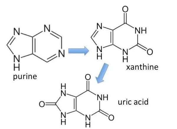 *注:嘌呤译自Purine,生物体内普遍存在的物质,主要以嘌呤核苷酸的形式存在。